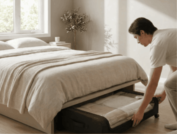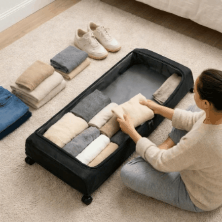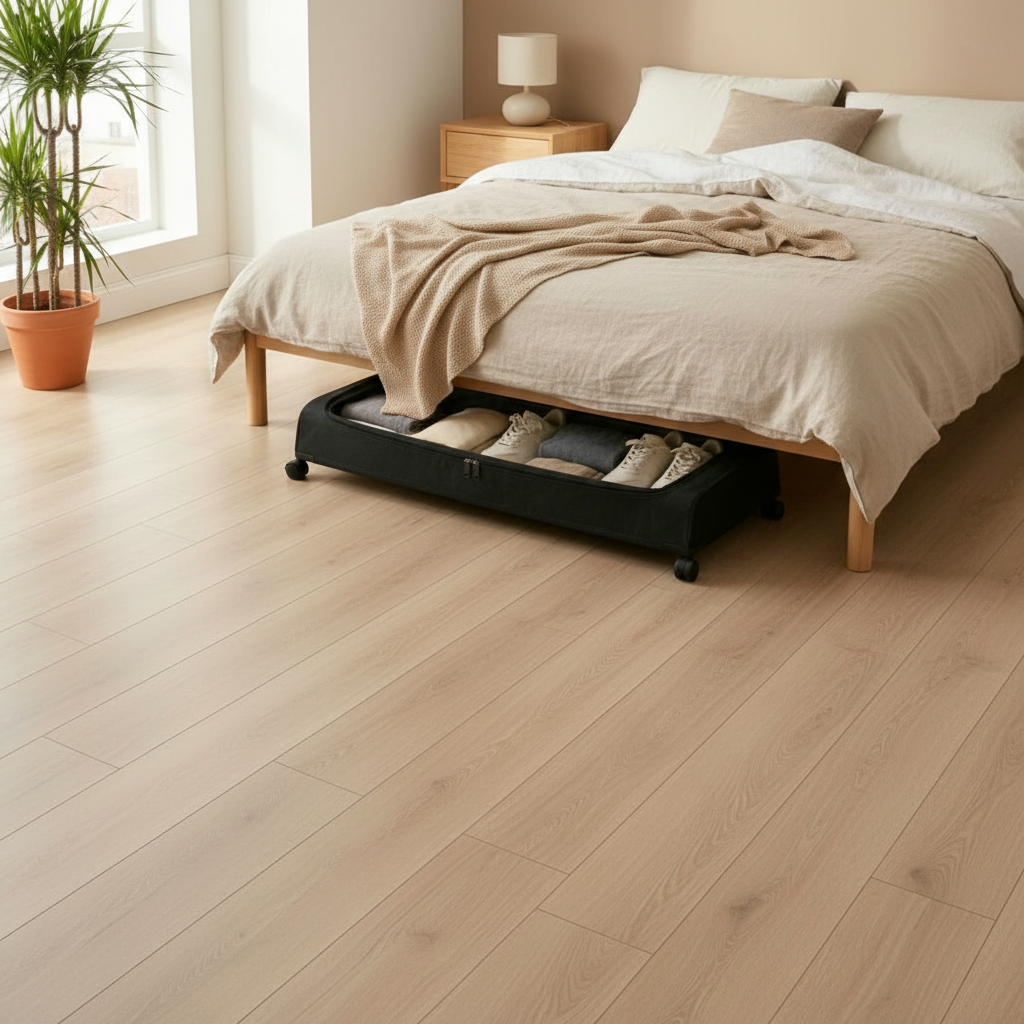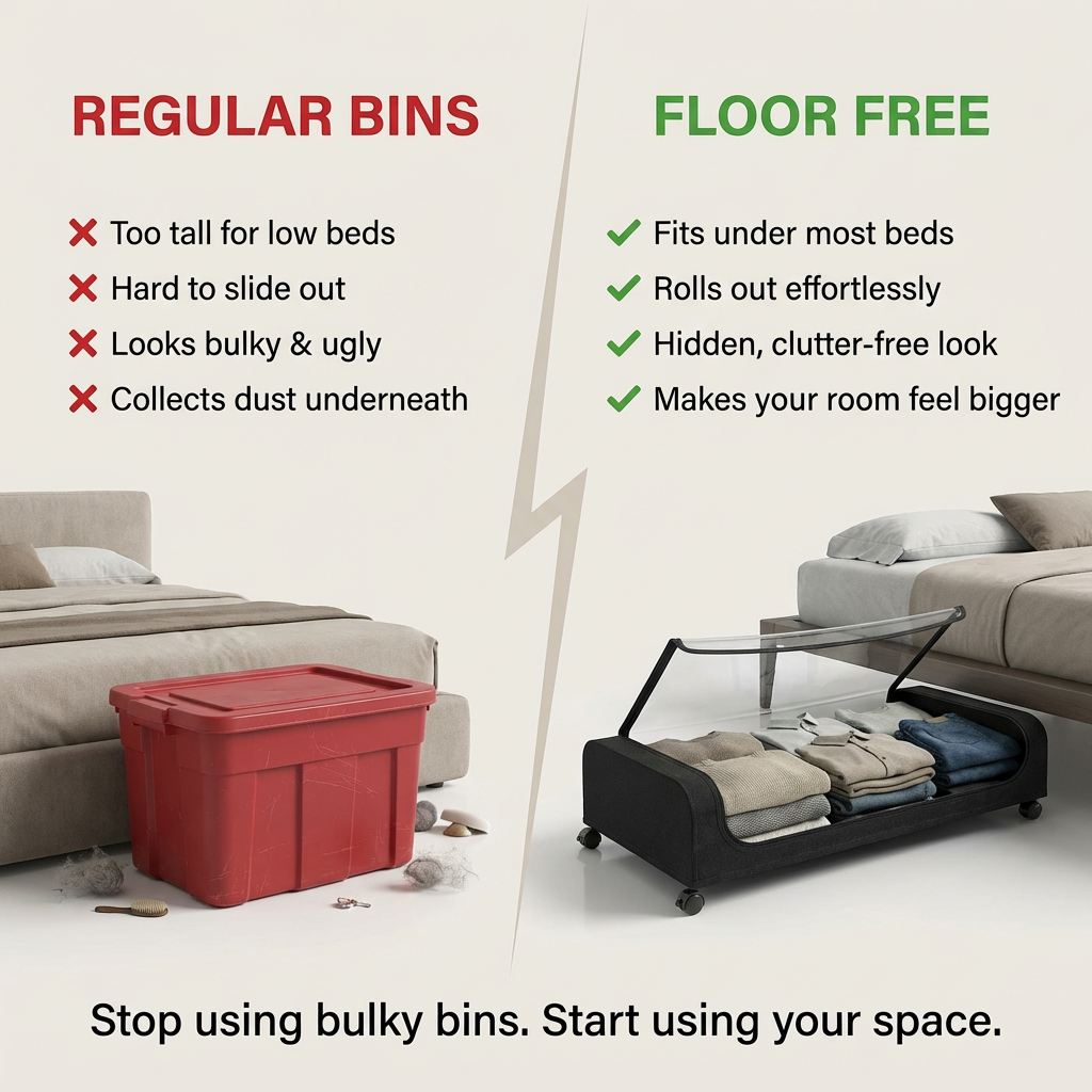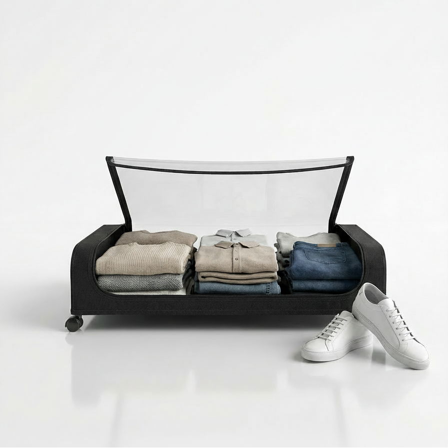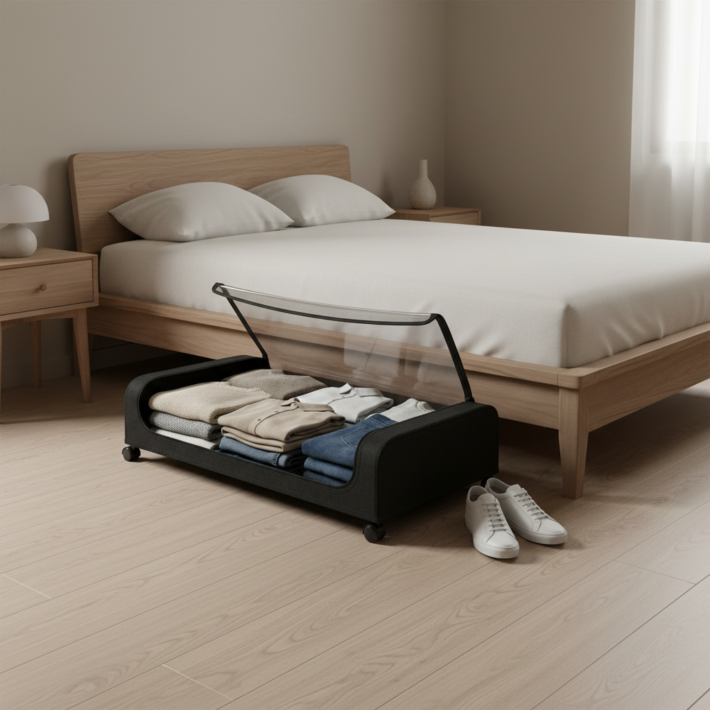A low-profile rolling storage solution designed to eliminate clutter and maximize unused space under your bed.